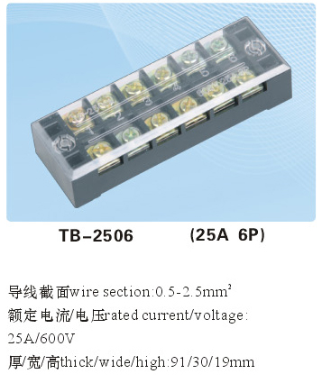 產(chǎn)品總匯>TB-2506 (25A 6P)通用接線端子